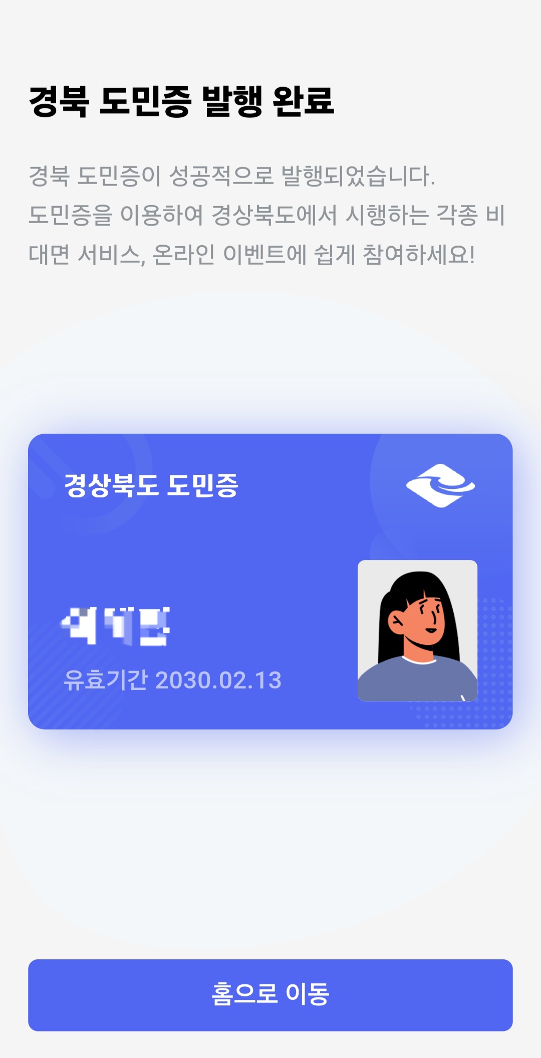2. 본인 인증에서 모든 부분 입력을 하게 되면 경북 도민증이나 행복증이 발행이 됩니다.