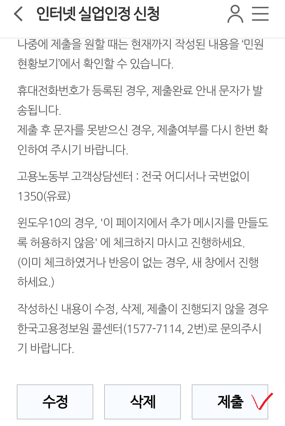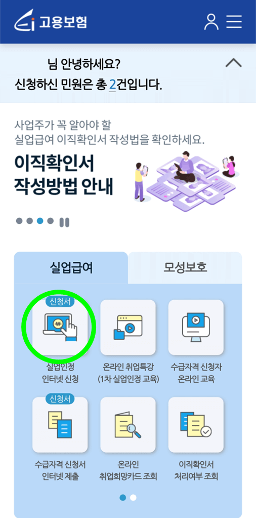 모바일 웹으로 실업급여 신청하기